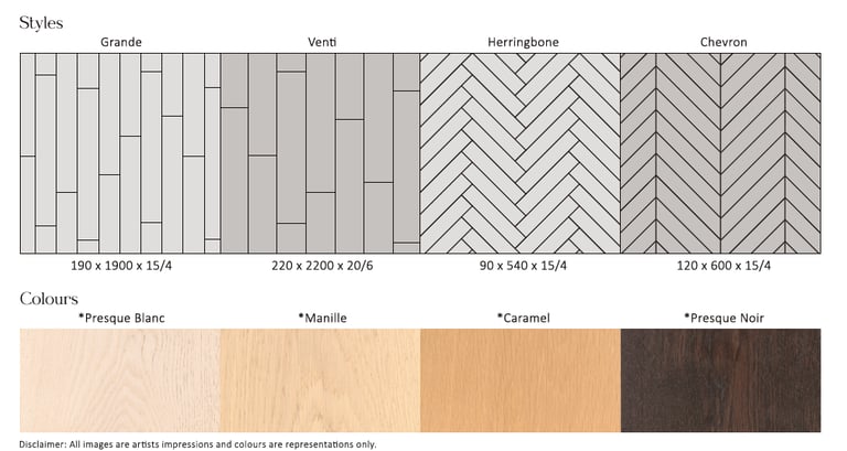 Available in 4 popular sizes. Chevron & Herringbone Parquetry 190mm & 220mm wide boards.